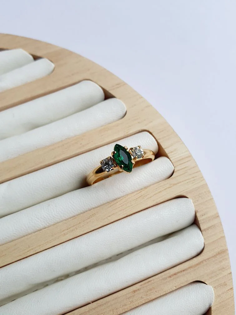 Green - Vintage Gold Plated Ring with Crystal