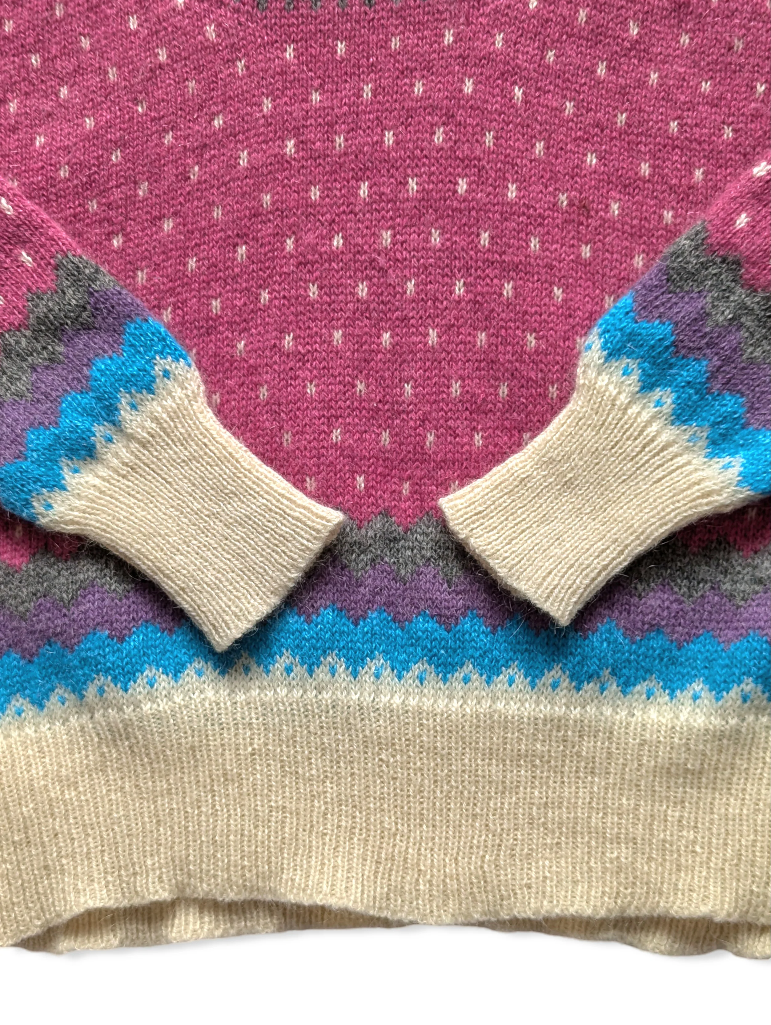Vintage Colourful Pure Wool Fair Isle Knit Jumper - L