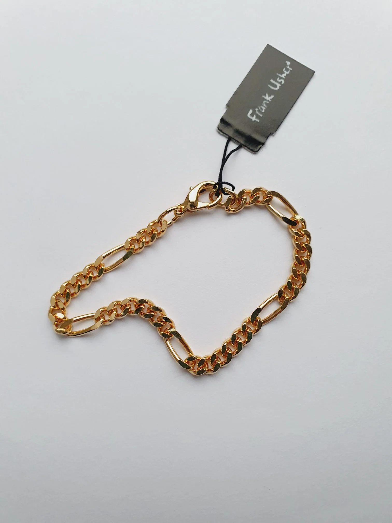 Vintage gold plated figaro chain bracelet by Frank Usher.