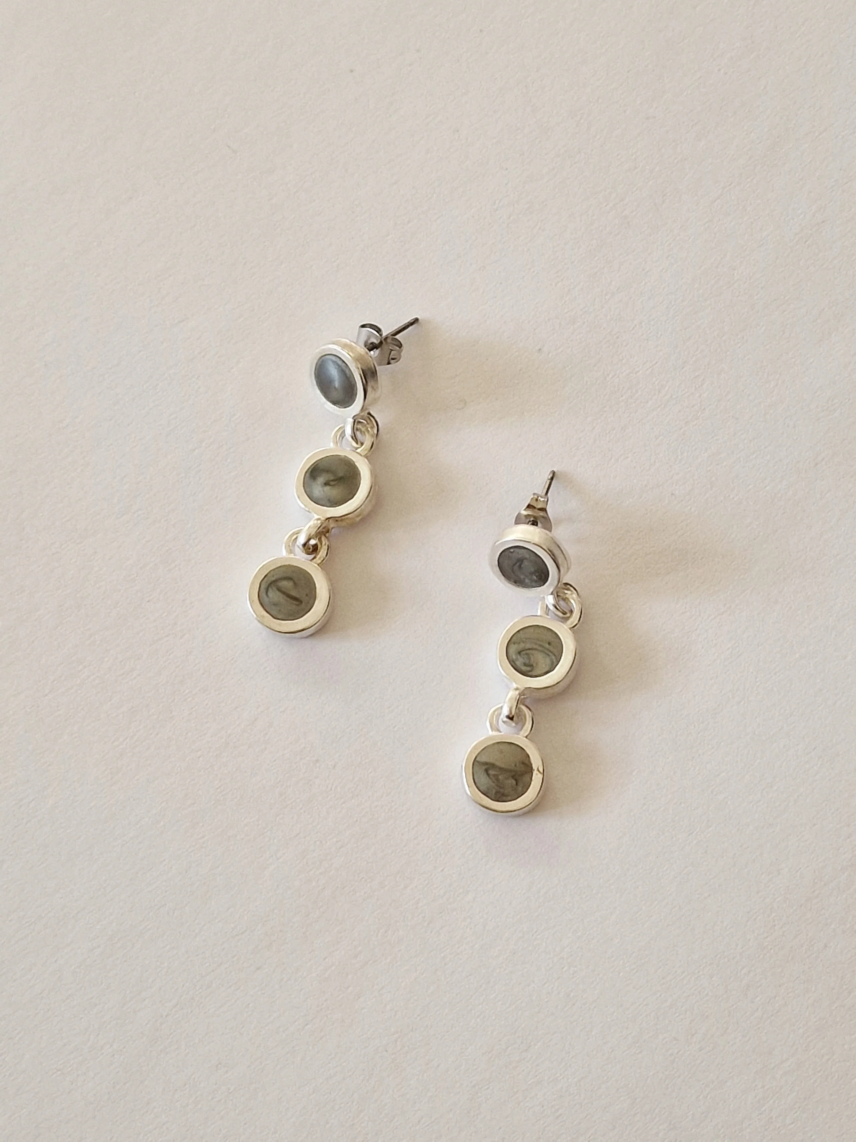Vintage silver plated grey enamel drop earrings. Deadstock, never been worn and in excellent condition.