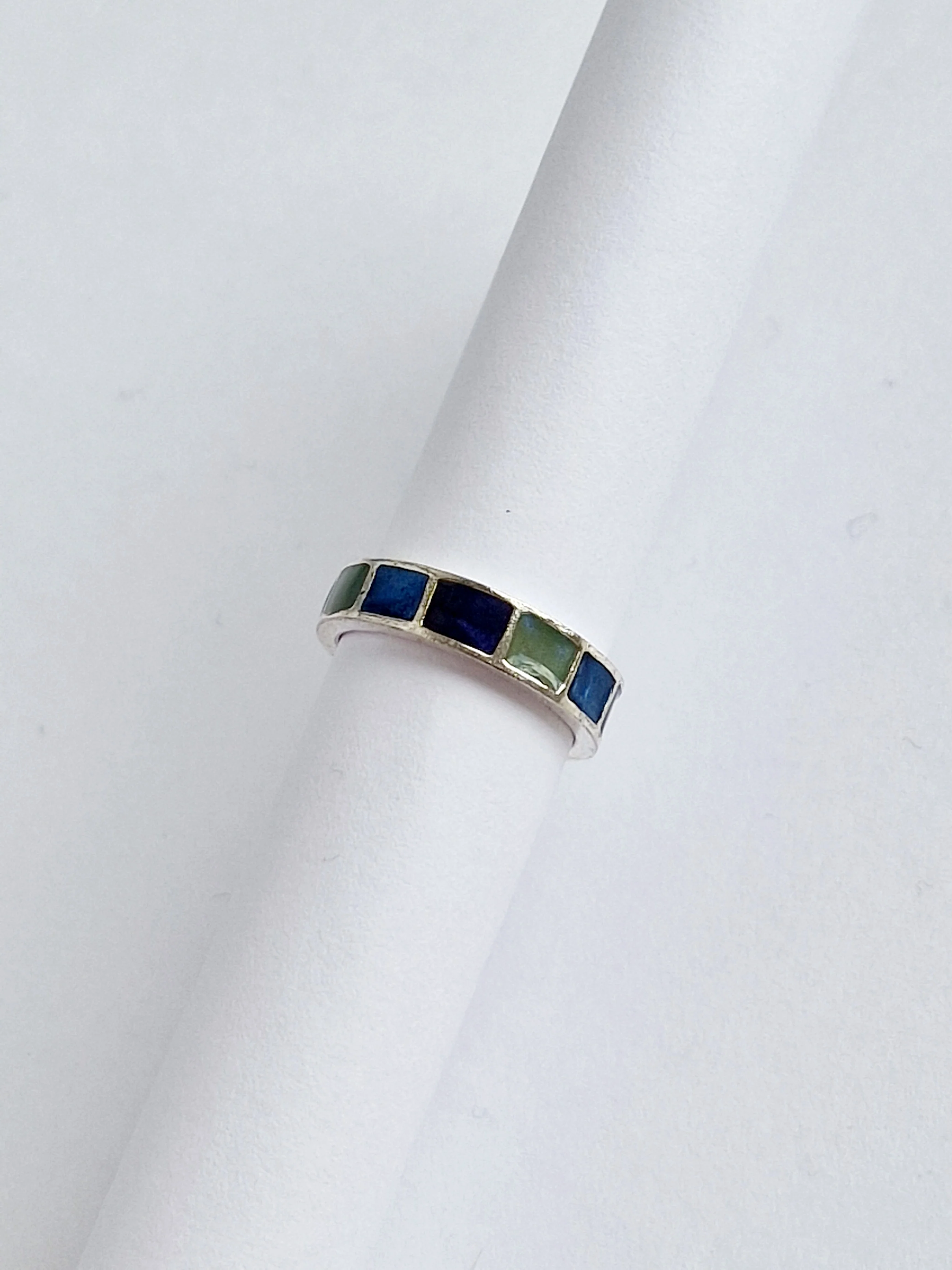 -70%Vintage Silver Plated Ring with Blue Enamel—